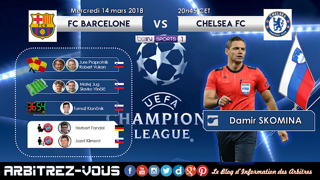 Publié le 11/03/2018 - L'UEFA a publié la désignation des arbitres pour les deux matchs des 8èmes de Finale Retour de la CHAMPIONS LEAGUE qui se dérouleront le 14 mars prochain...