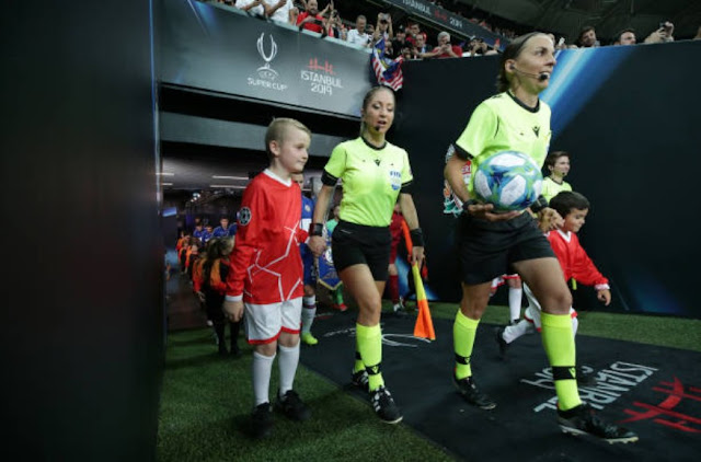 Roberto Rosetti, directeur général de l'arbitrage de l'UEFA, avait annoncé à Frappart qu'elle officierait lors de la finale de la Super Coupe, avant que cela ne soit annoncé devant ses collègues à la fin d'un séminaire.