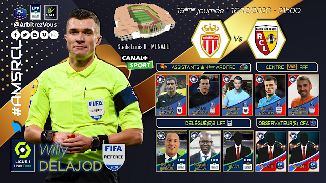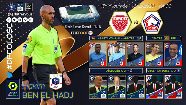 Publié le 15/12/2020 - La DTA a procédé à la désignation des Arbitres et Assistants pour la 15ème journée de LIGUE 1 UBER EATS qui aura lieu le 16 décembre 2020.